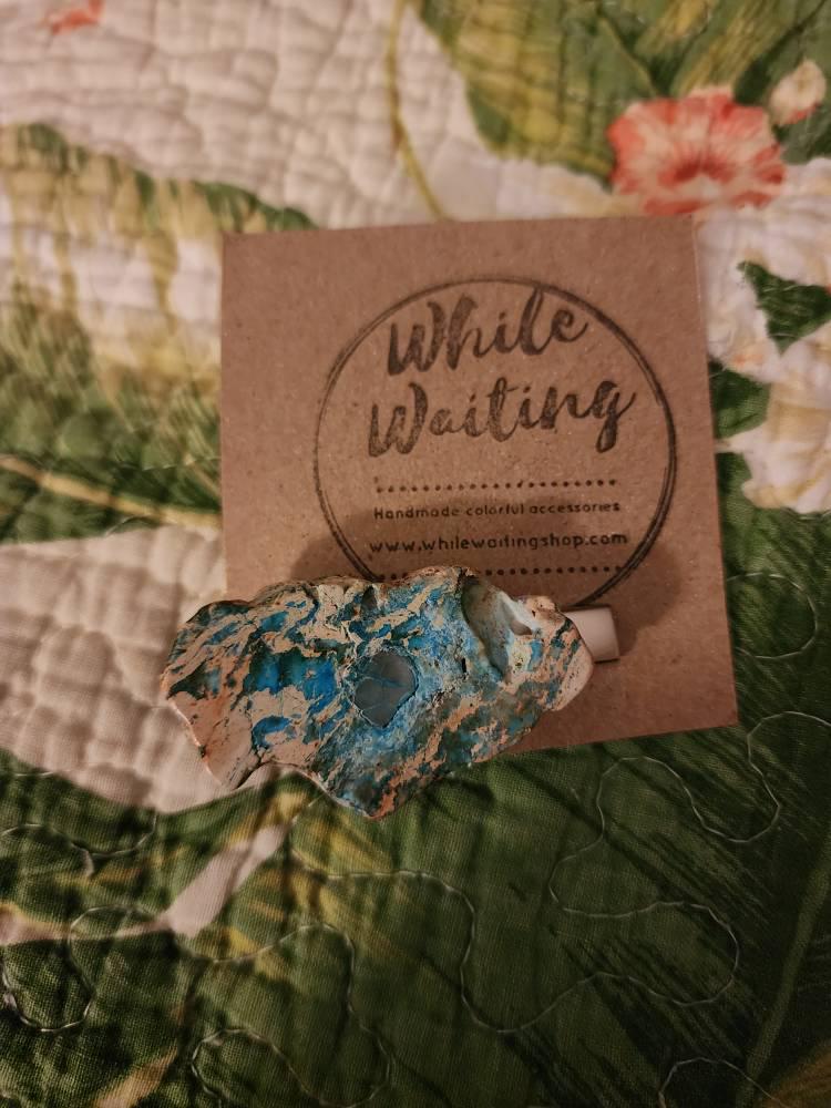 These lovely hair clips are all one of a kind. The jasper stones have veins of a variety of aqua and turquoise colors going through them and have unique organic shapes. Each clip is just 2 inches and has a simple alligator clip for easy yet firm grasp. Please choose your stone preference.